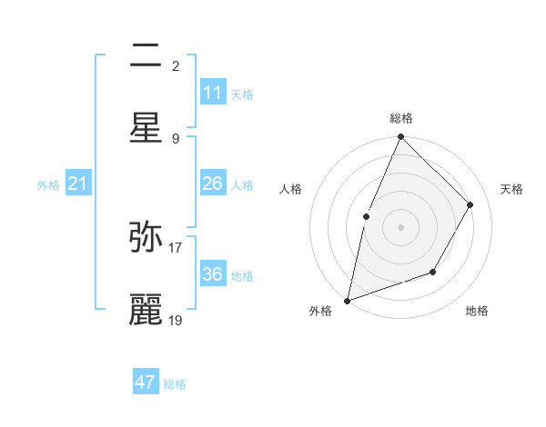 二星 弥麗さんを姓名の画数から五運を鑑定