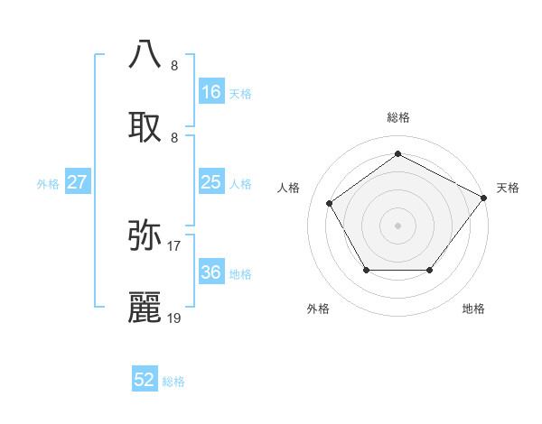 八取 弥麗さんを姓名の画数から五運を鑑定