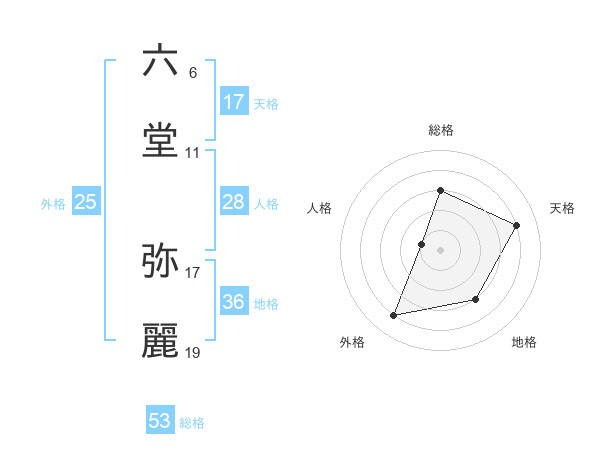 六堂 弥麗さんの天格は17画の4点!