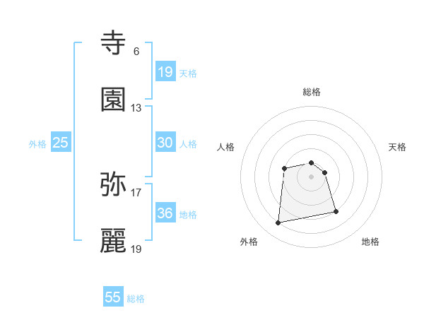 寺園 弥麗さんの総格は55画の1点!