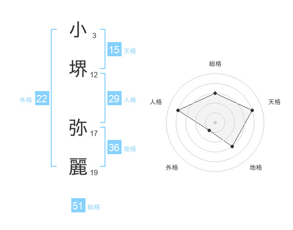 小堺 弥麗さんの総格は51画の3点!