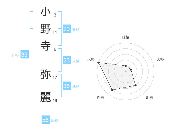 小野寺 弥麗さんを姓名の画数から五運を鑑定