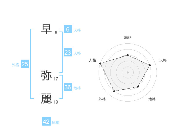 早 弥麗さんの天格は6画の4点!