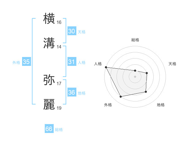 横溝 弥麗さんを姓名の画数から五運を鑑定