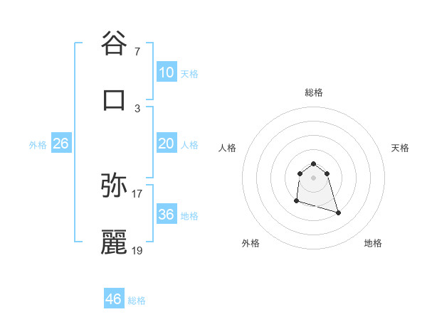 谷口 弥麗さんの総格は46画の1点!
