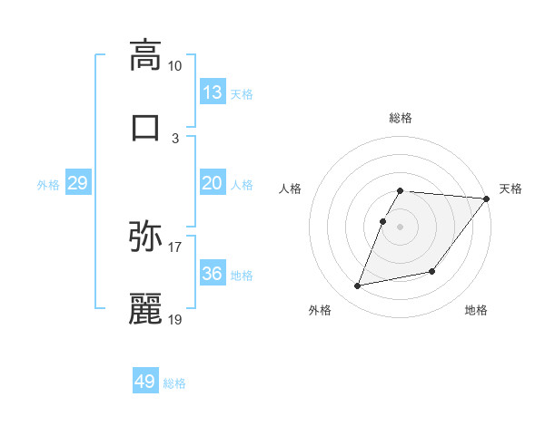 高口 弥麗さんを姓名の画数から五運を鑑定