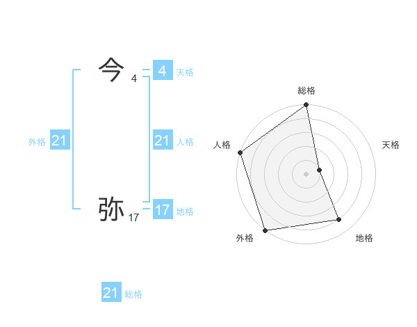 今 弥さんの外格は21画の5点!