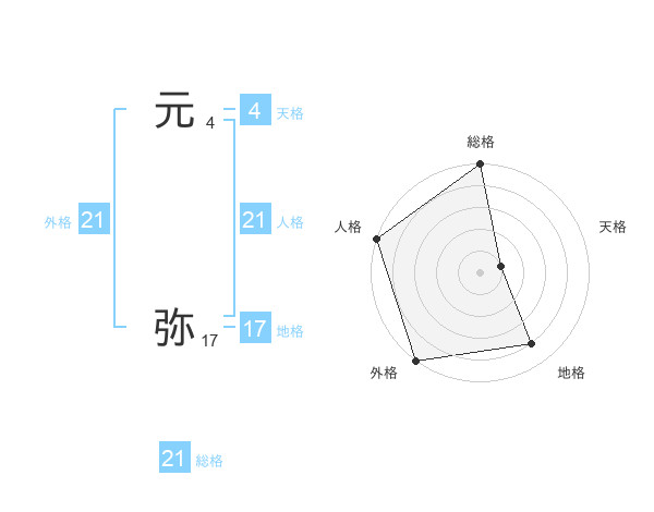 元 弥さんの総格は21画の5点!