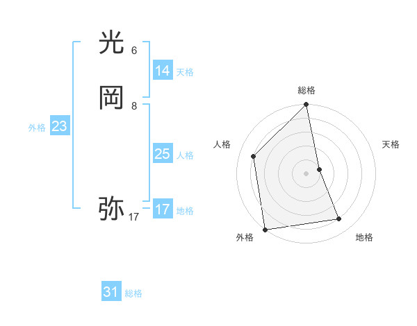 光岡 弥さんの総格は31画の5点!