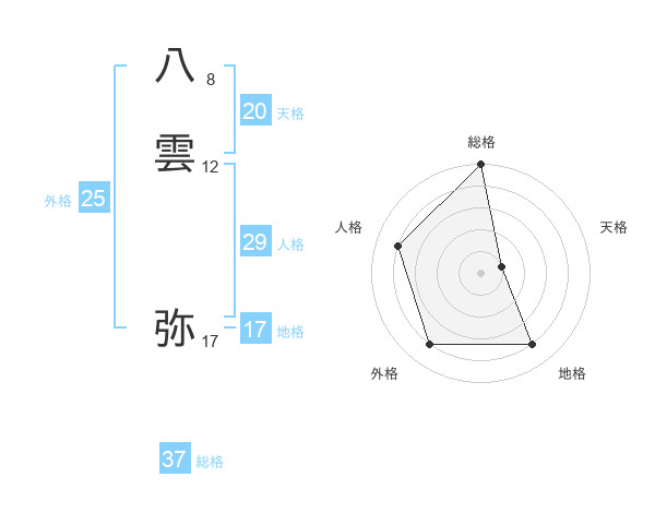 八雲 弥さんを姓名の画数から五運を鑑定