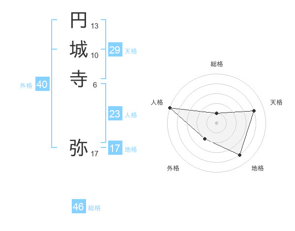 円城寺 弥さんの総格は46画の1点!