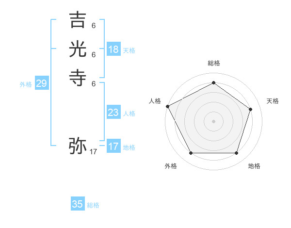 吉光寺 弥さんの総格は35画の4点!