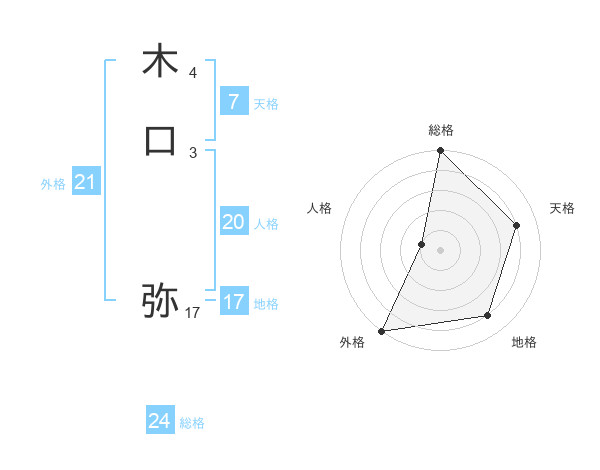 木口 弥さんの総格は24画の5点!