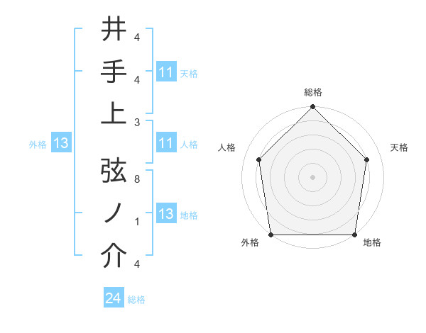 井手上 弦ノ介さんを姓名の画数から五運を鑑定