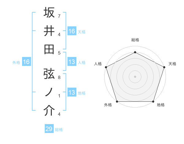 坂井田 弦ノ介さんを姓名の画数から五運を鑑定