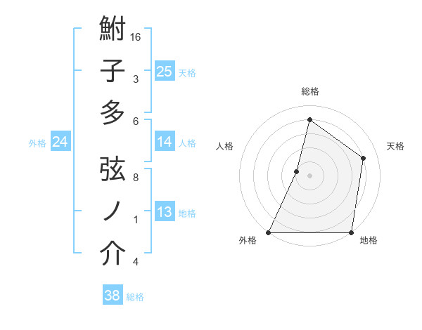 鮒子多 弦ノ介さんの総格は38画の4点!