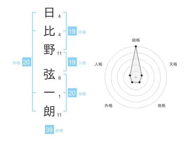 日比野 弦一朗さんを姓名の画数から五運を鑑定