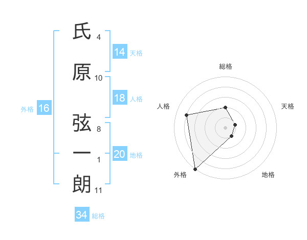 氏原 弦一朗さんを姓名の画数から五運を鑑定