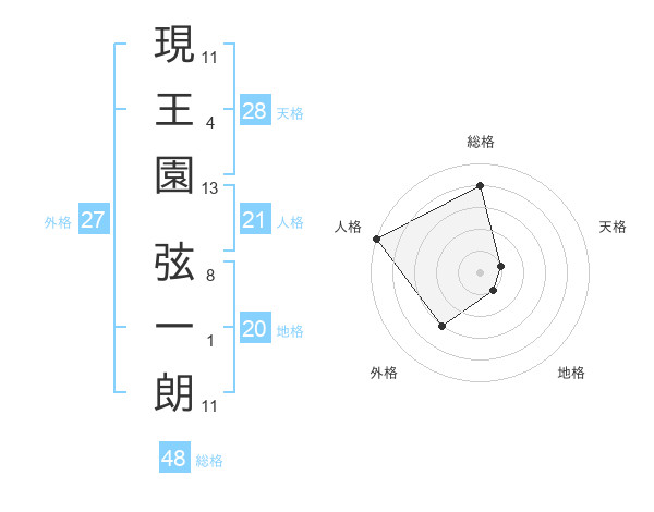 現王園 弦一朗さんを姓名の画数から五運を鑑定