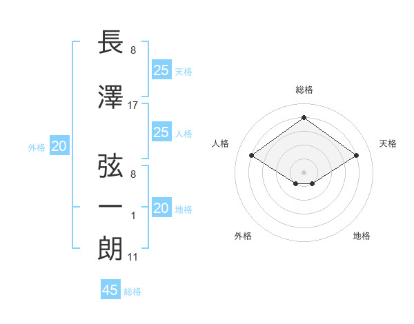 長澤 弦一朗さんの天格は25画の4点!
