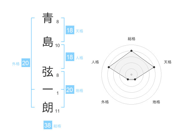 青島 弦一朗さんの地格は20画の1点!
