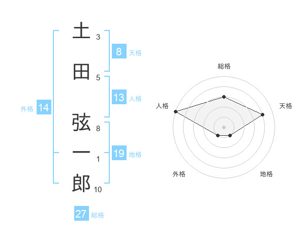 土田 弦一郎さんを姓名の画数から五運を鑑定