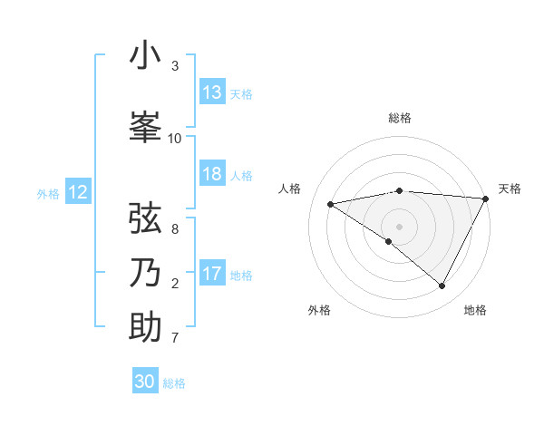 小峯 弦乃助さんの総格は30画の2点!