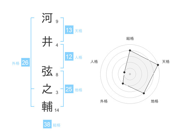 河井 弦之輔さんを姓名の画数から五運を鑑定