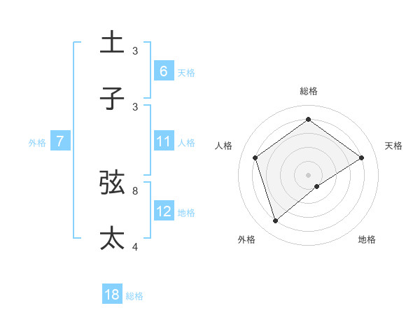 土子 弦太さんの総格は18画の4点!