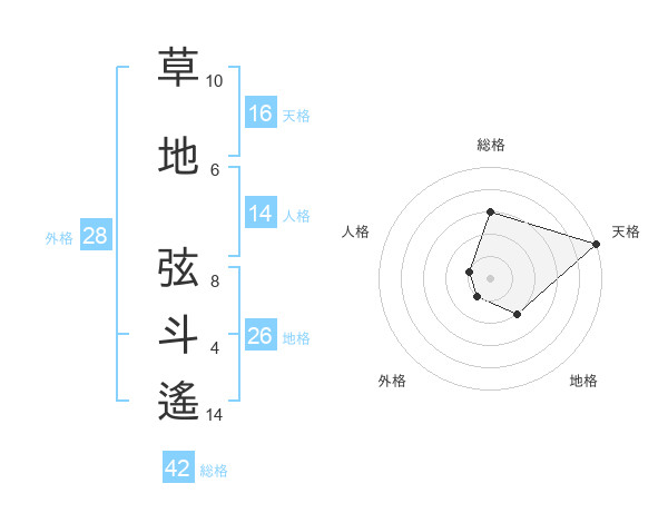 草地 弦斗遙さんの総格は42画の3点!