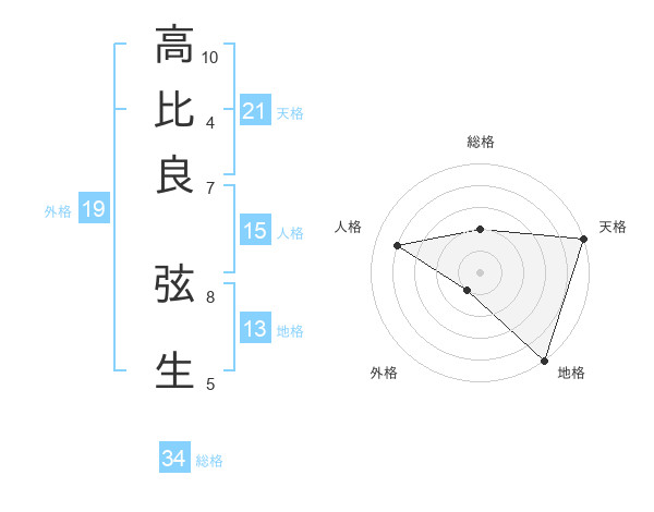 高比良 弦生さんの天格は21画の5点!