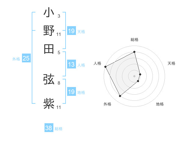 小野田 弦紫さんを姓名の画数から五運を鑑定