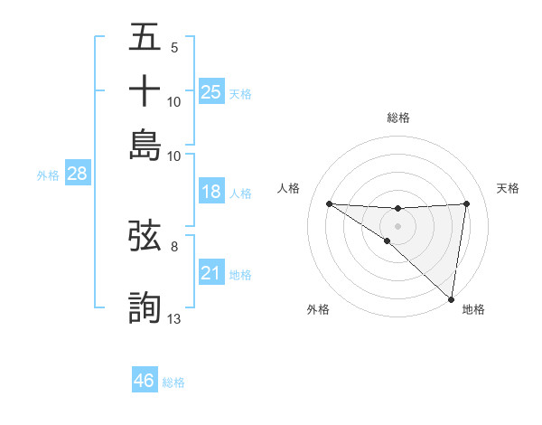 五十島 弦詢さんの総格は46画の1点!