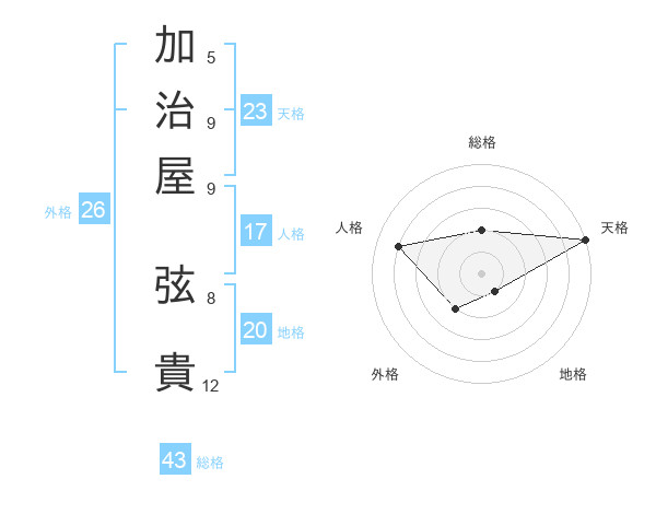 加治屋 弦貴さんを姓名の画数から五運を鑑定