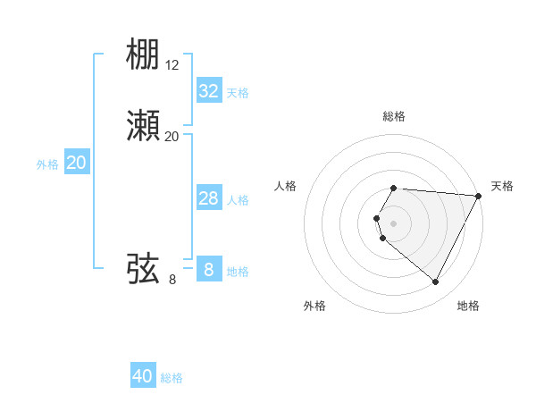 棚瀬 弦さんの天格は32画の5点!