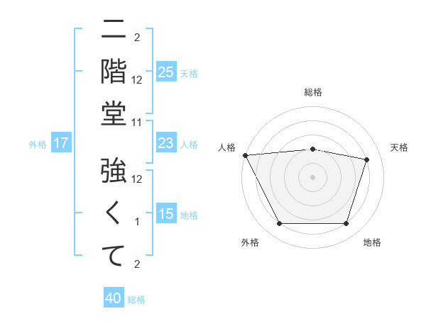 二階堂 強くてさんを姓名の画数から五運を鑑定