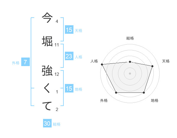 今堀 強くてさんを姓名の画数から五運を鑑定