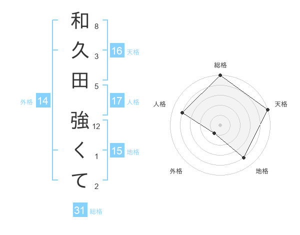 和久田 強くてさんを姓名の画数から五運を鑑定