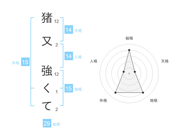 猪又 強くてさんを姓名の画数から五運を鑑定