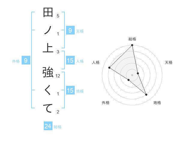 田ノ上 強くてさんの総格は24画の5点!