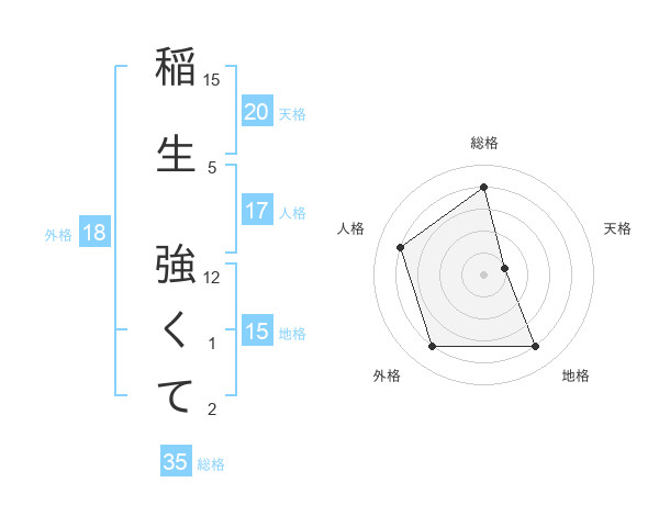 稲生 強くてさんを姓名の画数から五運を鑑定