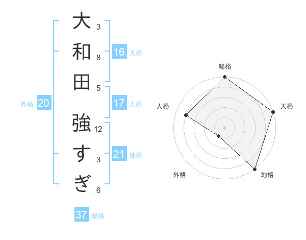 大和田 強すぎさんの総格は37画の5点!