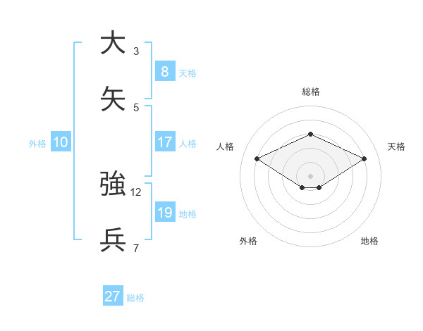大矢 強兵さんを姓名の画数から五運を鑑定