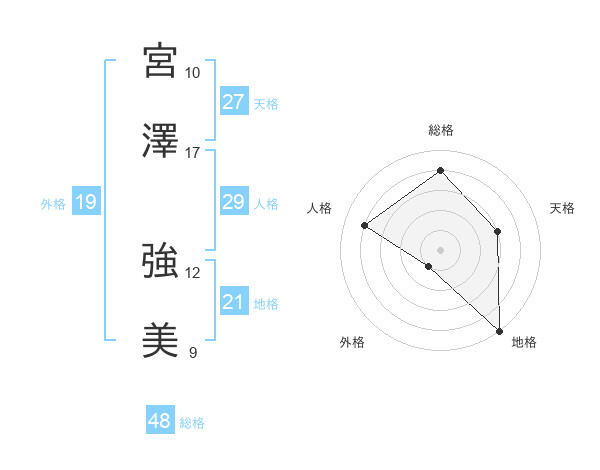 宮澤 強美さんを姓名の画数から五運を鑑定