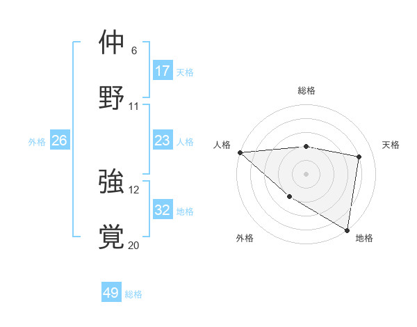 仲野 強覚さんを姓名の画数から五運を鑑定