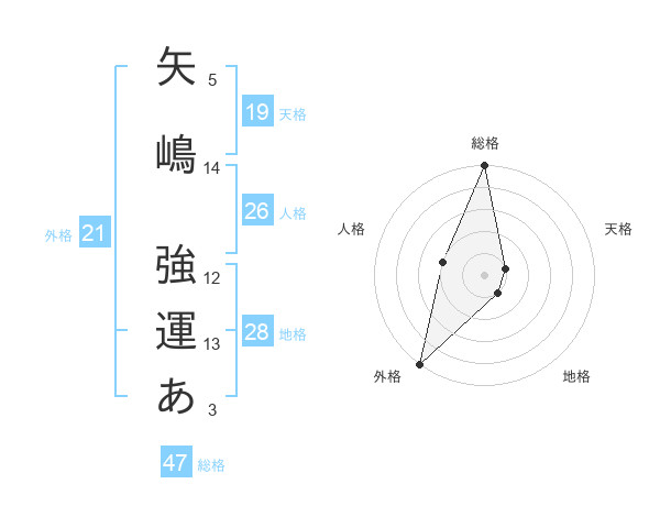 矢嶋 強運あさんの総格は47画の5点!