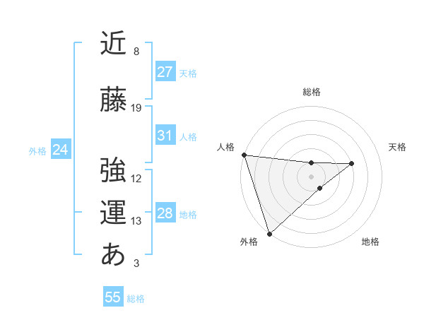 近藤 強運あさんの外格は24画の5点