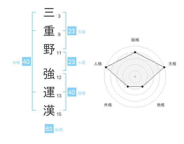 三重野 強運漢さんを姓名の画数から五運を鑑定