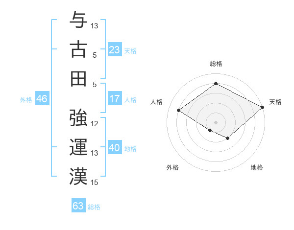 与古田 強運漢さんを姓名の画数から五運を鑑定
