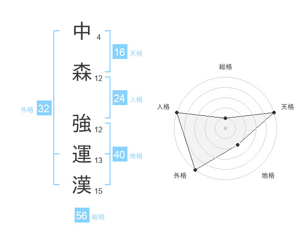 中森 強運漢さんを姓名の画数から五運を鑑定